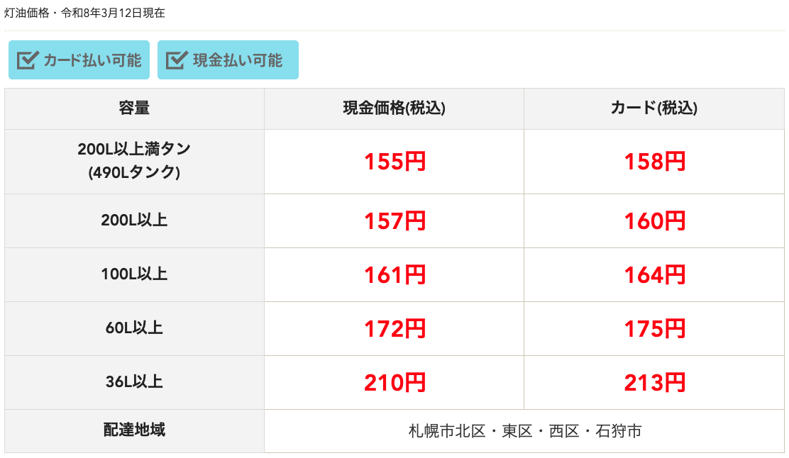 【灯油配達価格の更新】